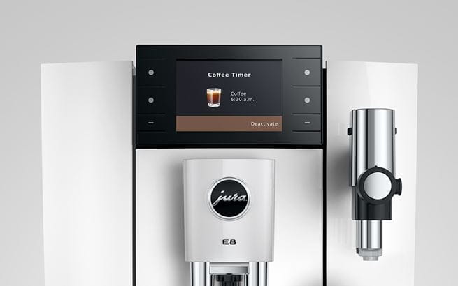 E8 пропонує більше зручності, ніж будь-коли раніше: завдяки Coffee Timer та JOE® ваша ранкова кава готова, щойно ви прокинетеся, запрошуючи вас розпочати свій день. Помічник якості робить обслуговування E8 більш ресурсоефективним та гарантує максимальну гігієну для максимального задоволення. Любителі кави можуть легко орієнтуватися у світі кавових вражень завдяки 3,5-дюймовому кольоровому дисплею з бічними кнопками, де різні кольори дозволяють легко знайти те, що Ви шукаєте.